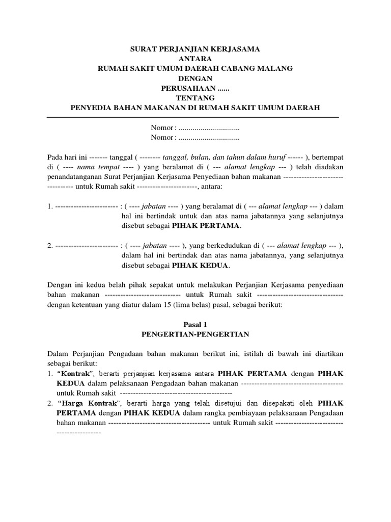 4 Contoh Surat Perjanjian Kerjasama Yang Baik Dan Benar from www.99.co Jan 10, 2021 · dalam sebuah kesepakatan baik itu dilakukan antar perorangan atau perusahaan, adanya perjanjian dalam bentuk tertulis adalah hal yang utama. Perjanjian antar dua pihak ini biasa dikenal dengan istilah memorandum of understanding (mou). Dalam sebuah usaha perdagangan terkadang. Contoh surat pernyataan kerja, contoh surat dinas, contoh surat lamaran kerja pengertian dan penggunaan perjanjian kerjasama secara sederhana. Ketika melakukan kegiatan dengan kerjasama semua pihak akan merasa aman dengan adanya surat perjanjian. Masa berlaku tersebut pada pasal 1 adalah 12 (dua belas) bulan terhitung sejak perjanjian ini disepakati dan ditandatangani. Atas kesepakatan para pihak, kontrak dapat diperpanjang waktunya dan/atau ditambah nilai uang pokok jaminan investasi yang diatur dalam kontrak baru dan/atau addendum kontrak. 1.2.2 buku panduan ini hendaklah dibaca bersama arahan perbendaharaan (a.p), surat pekeliling perbendaharaan (spp), pekeliling kontrak perbendaharaan